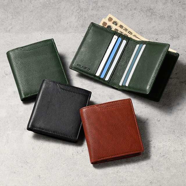 ■柔らかく、しっとりとした牛革を使用 素材は牛革を使用。柔らかさとシワ感を出すためにミリング加工を施しました。90%植物性タンニンなめしされた半ヌメの牛革です。上品な仕上がりで、ブラック、ダークブラウン、グリーンの3色をご用意しました。 ■機動力抜群のコンパクト財布 お札、小銭、カードが過不足なく入って、掴みやすい小ぶりなサイズが嬉しい2つ折り財布です。胸ポケットにもすっぽり。また、便利なマネースルー機能が備わっており、小銭入れからもお札を取り出すことが可能です。ビジネスからカジュアルまで幅広く使えるルックスです。 ■小銭→お札の切り替えも、スマートに 札入れのほかに、お札が簡単に取り出せるマネースルー機能がついています。マネースルー機能はボックス小銭入れの上部に四角い窓が付いており、その窓から容易に取り出しが可能です。「小銭で払おうとしてやっぱり足りなくてお札で…」という状況のときに使える便利でユニークな機能です。 ■使うたびに納得、ちょうどいいポケット 四角い窓のすぐ手前には、カード1枚分がぴったり収まるフリーポケットを配置しました。頻繁に使うショップカードを入れておけば、サッと取り出せてとても便利。使う人の動作を考え抜いた、まさに「ここに欲しかった!」という絶妙な位置にあり、日常の使いやすさをぐんと高めてくれます。細やかな工夫が光る、心憎いデザインです。 ■ひと目で見渡せる、スマートな小銭入れ 小銭入れは、ひと目で中身がわかり、取り出しやすいボックス型を採用しました。ホックを外すと、パッと箱型に立ち上がり、小銭が一目で見渡せるので、レジ前でも慌てずスムーズにお会計ができます。開口部が広く、奥に入った硬貨も取り出しやすいのが嬉しいポイントです。 ■見た目以上の収納力で、使いやすさ抜群 内側には、6枚以上のカードをしっかり収納できるカードポケットと、深めのオープンポケットをご用意。出し入れしやすく、カードが重ならずに整理整頓できます。また、カードポケットは対に配置されているので、落ちる心配もありません。さらに、札入れも備えているので、日常使いはもちろん、旅行や仕事用としても安心の収納力です。 ■前面にICカードポケット付き 前面には、通勤や通学での移動をスムーズにする便利なポケットを配置しました。ICカードや定期券を入れておけば、改札では取り出すことなくそのままタッチ&ゴー。忙しい朝でも、バッグの中を探す手間がなく、ストレスフリーで使えます。 ■シンプルなデザイン、上質な素材はギフトにぴったり 年齢問わずお使い頂ける、デザインとカラーリングなので、ギフトにもおすすめ。 専用の化粧箱付きでお届けします。 −−−−−−−−−− 【サイズ(約)】縦10cm×横9.5cm×厚さ2.5cm 【素材】牛革、ポリエステル、他 【仕様】外側:ICカードポケット×1 内側:札入れ×1、ボックス型コインケース×1、カードポケット×7、オープンポケット×2 【カラー】3色(ブラック、ダークブラウン、グリーン) −−−−−−−−−−