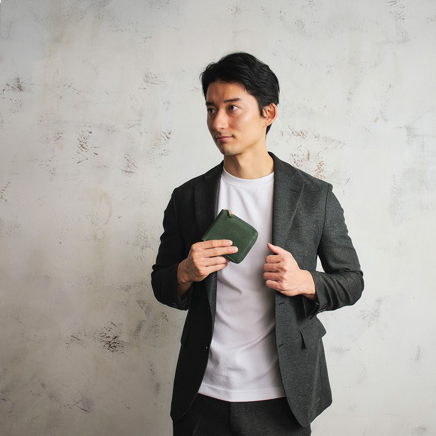 素材は牛革を使用。柔らかさとシワ感を出すためにミリング加工を施しました。90%植物性タンニンなめしされた半ヌメの牛革です。上品な仕上がりで、ブラック、ダークブラウン、グリーンの3色をご用意しました。