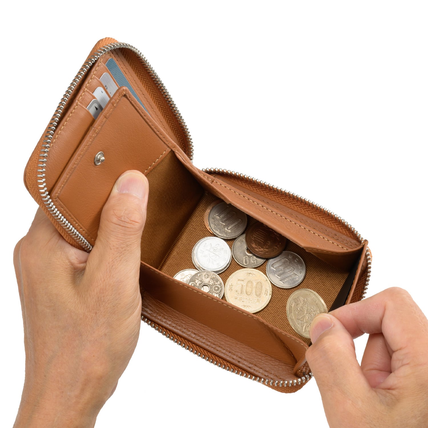 ぐるっと一周をファスナーで囲んでいるから、財布を傾けても中身が飛び出す心配がありません。旅行や移動中など、大切なカードや現金をしっかり守ります。さらに、大きく開くので中身がひと目で確認でき、必要なカードや小銭もスムーズに取り出せます。安全性と使いやすさを両立した、頼もしいお財布です。