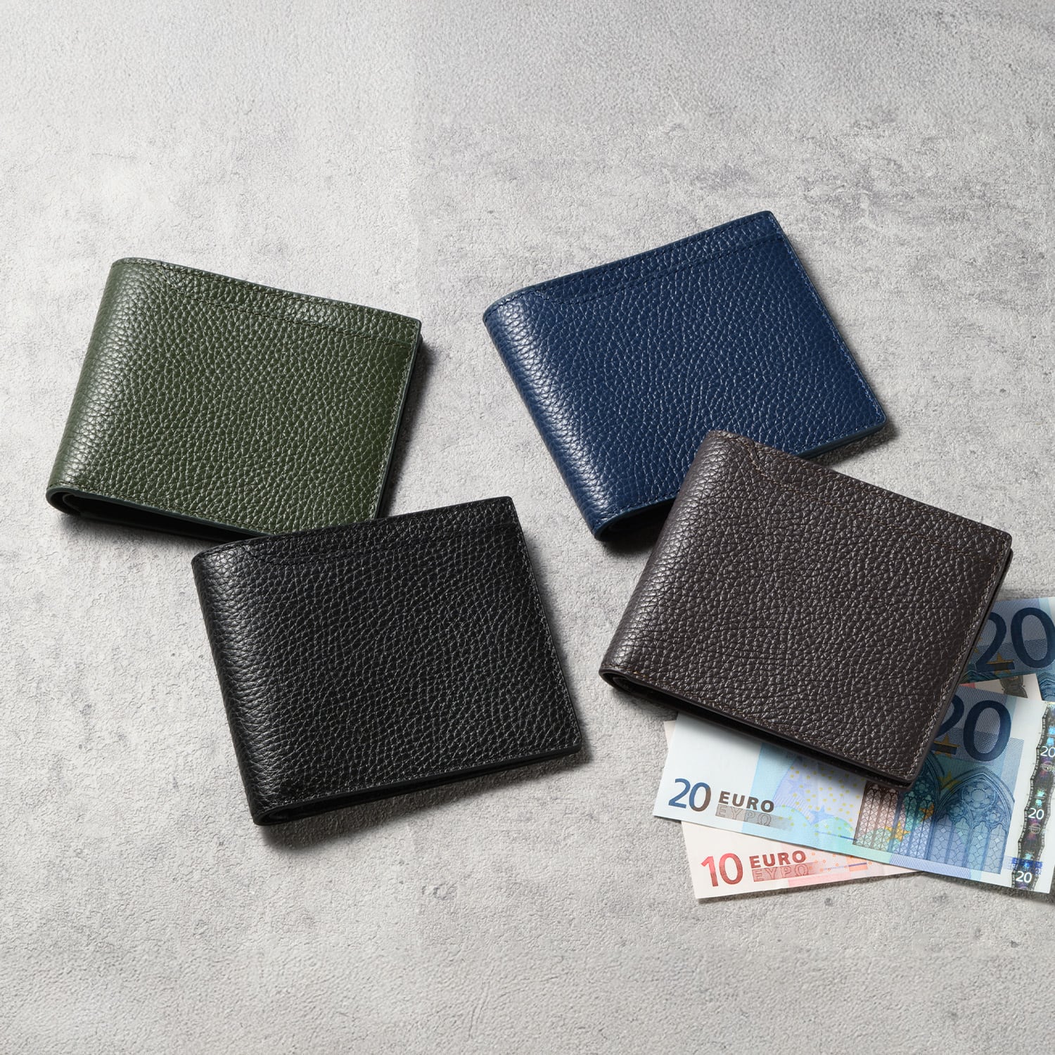 小銭入れを持たず、紙幣とカードに特化した純札入れ。内側には両面にカードポケットを配置し、複数枚のカードを整理しやすい仕様。