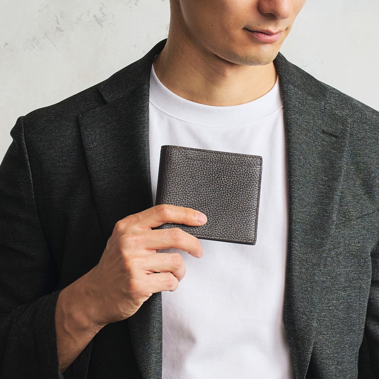 シュリンクレザーの上品さは、ビジネスシーンとの相性も良好。「財布は薄く、動作は美しく」そんな価値観を持つ方に向けた、純札入れならではの一品です。