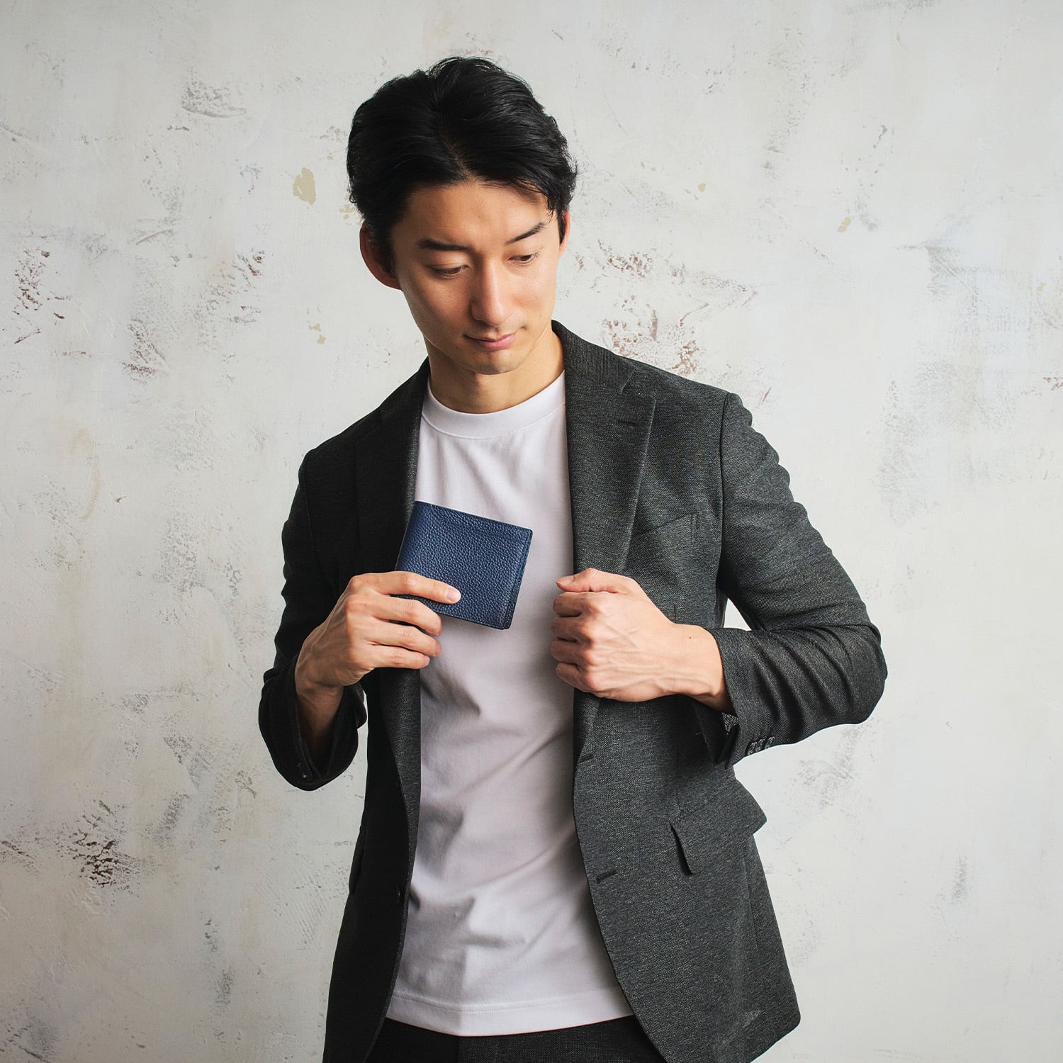 厚みが出にくいため、ジャケットの内ポケットに入れてもシルエットを崩しません。