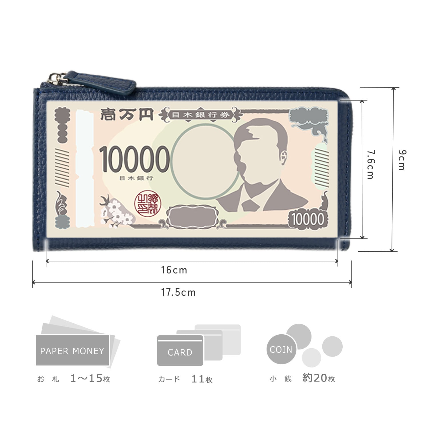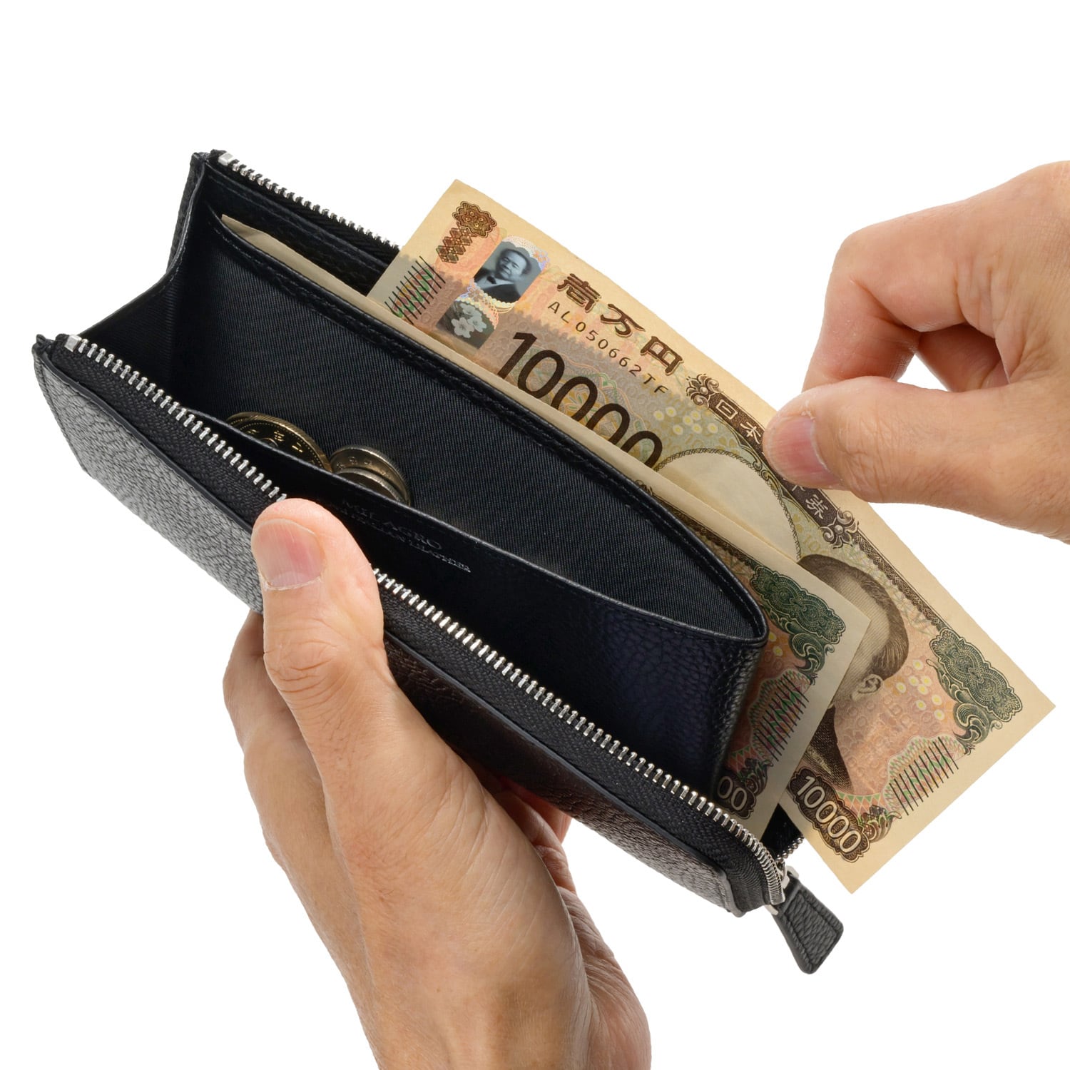 ■一万円札が折らずにピッタリ収まる L字ファスナー長財布